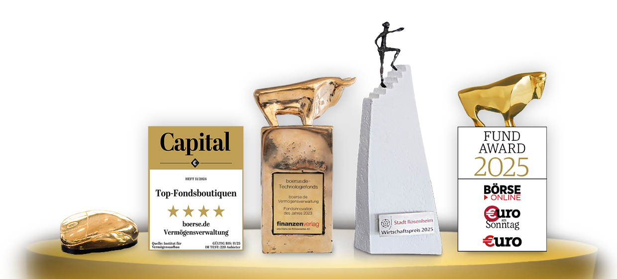 Heute sind Champions Kern aller boerse.de-Fonds, des Direktanlageservices myChampions100 sowie der Einzelkontenverwaltungen myChampionsPREMIUM, boerse.de-Depotmanagement und boerse.de-Stiftungs-Strategien. Einschließlich der BCDI-Zertifikate renommierter Schweizer Emissionshäuser sowie des boerse.de-Gold-ETCs (WKN: TMG0LD) für Responsible Gold, haben Anleger schon mehr als 600 Mio. Euro in diese auf Champions basierenden transparenten, regelbasierten und innovativen Anlagekonzepte investiert.